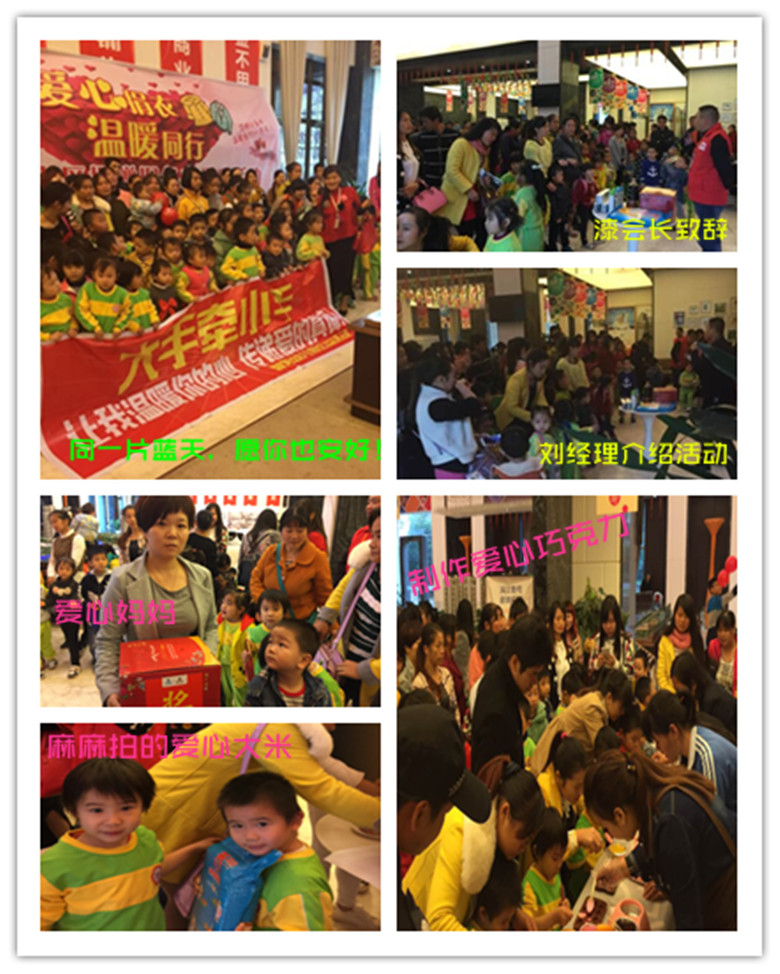 啟動(dòng)儀式上,三陸康外拓經(jīng)理劉春廣先生向大家宣講了此次活動(dòng)意義及相關(guān)活動(dòng)安排,并公布了本次捐贈(zèng)目標(biāo):冬衣2000件,愛心善款1000元。現(xiàn)場(chǎng)參加友人均表示將積極投入本次活動(dòng)的捐贈(zèng)、推廣中,確保目標(biāo)達(dá)成。隨后,宜春市志愿者聯(lián)合會(huì)會(huì)長(zhǎng)漆少云先生發(fā)表致辭,感謝所有參加愛心公益活動(dòng)的大小朋友們,并說道:“其實(shí)愛心事業(yè)很簡(jiǎn)單,就是把善良變成力所能及的行動(dòng),希望越來越多的人能夠加入愛心公益行動(dòng)中!”接著,【三陸康】濱江壹號(hào)營(yíng)銷中心捐贈(zèng)了一些小禮品,大家舉行了一場(chǎng)激動(dòng)人心的小型愛心競(jìng)拍會(huì),所有商品1元起拍。出乎意料的是,主持人明示了把所有禮品價(jià)格,但所拍金額均高于禮品本身價(jià)格,大家用獨(dú)特的方式傳播著愛心。拍賣結(jié)束后,大家在愛心墻上寫下了自己的祝福,同一片藍(lán)天下,愿你安好!最后,小朋友在家長(zhǎng)的協(xié)助下親自制作了愛心巧克力。愛心巧克力將以5元/2顆的價(jià)格進(jìn)行義賣,所賣款將用于本次捐贈(zèng)衣的郵遞和貧困山區(qū)孩子的文具置購(gòu)。
