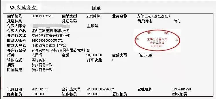 1月31日,江西三陸康集團第一時間向宜春市紅十字會捐款伍萬元,彰顯企業(yè)擔(dān)當(dāng),助力疫情防控。